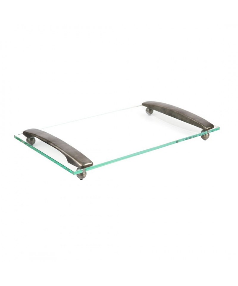 Specifications: Dimensions Length: 54 cm Width: 30 cm Height: 7 cm Material Glass Cast aluminium handles