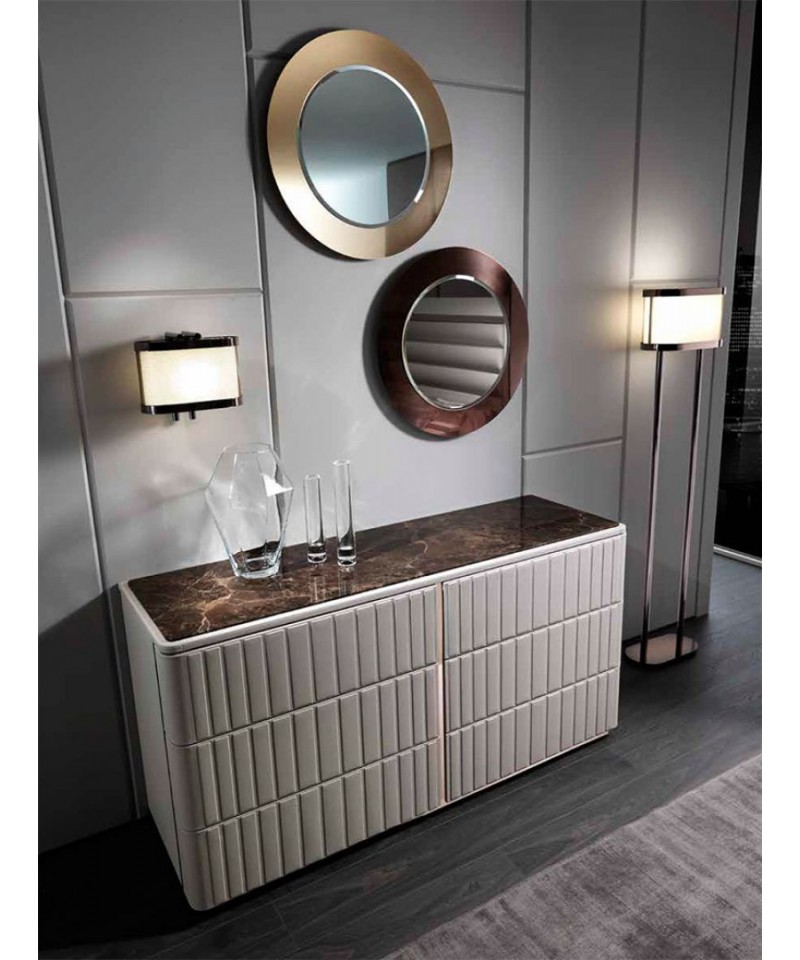 Elite drawers is a real finding for admirers of completed and bright combinations. Designers combined the traditional attributes of luxury — Spanish marble and Italian leather, textures and shades of which perfectly complement each other. Restrained lines on the facade worthily frame the tabletop canvas with the bewitching vein pattern. Each of the six sections of the product will become the reliable place of storing the pieces of your wardrobe.