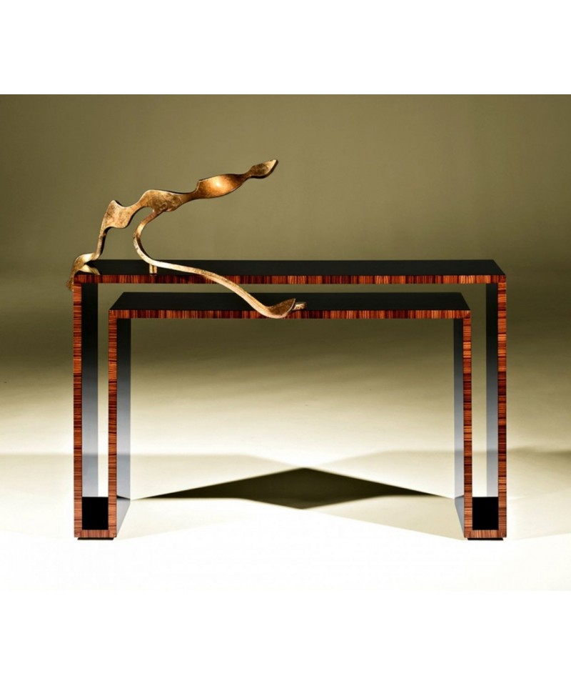 DUPLO U console is the exquisite accessory for a truly royal apartments. The piece of the collection is made of luxurious rosewood, and the sculpture, designed by Rui Matos, is covered with precious gold leaf. The product will perfectly fit into both modern and classic spaces.