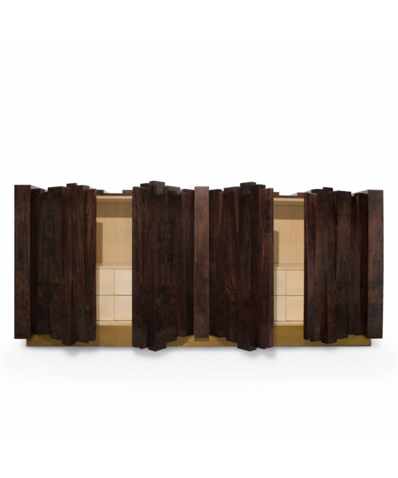 A mid century modern furniture piece that works as a tribute to Mother Earth’s heartbeat, Nazca walnut sideboard reminds the movement triggered by tectonic plates that involve us in an exquisite rhythm. Located in the west coast of South America, near to Peru, Nazca is a tectonic plate whose earth beat made extraordinary volcanic islands, like the Galapagos islands, and impulsed the creation of mid century modern furniture structured by wood and vintage brass. Nazca Walnut sideboard adds a richer earth beat into your modern home decor.