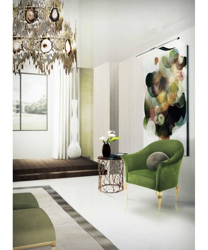 Specifications: Dimensions Diameter: 46 cm | 18’’ Height: 55 cm | 22’’ Material Cast brass structure with oxidized gold Synthetic leather