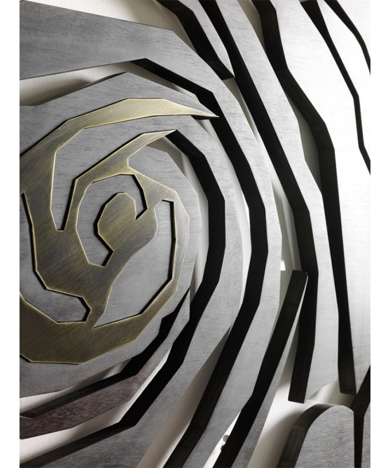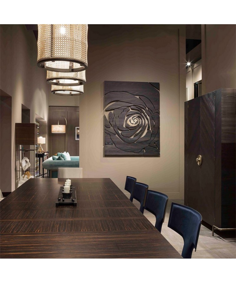 Designers recreated the delight of the fleeting beauty of the blooming tea-rose bud on the decorative canvas of the same name. Opened petals from the walnut solid seems to show us the heart of a bronze bud. ROSE will add a floral accent to your space.