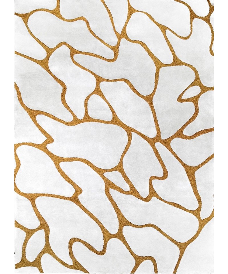 Golden lines twisting in chaotic dance on the white background symbolize the cold beauty of noble marble. Just as a clump of stone turns into a sophisticated sculpture in hands of a skillful craftsman, woolen and silk threads in hands of Rug’Society artisans become in flawless Cell Gold accessory.