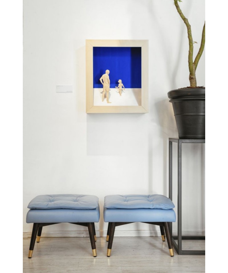 Lightweight and imponderable, and at the same time stylish and elegant bench will be an indispensable accessory in your hallway, bedside area and even in living room. Multi-layered and relief of leather upholstery in cornflower-blue shade give to the product a special insouciance of floating cloud in the clear sky. Sitting on the pouf, you can unlimitedly enjoy the comfort and incredible tactile sensations.