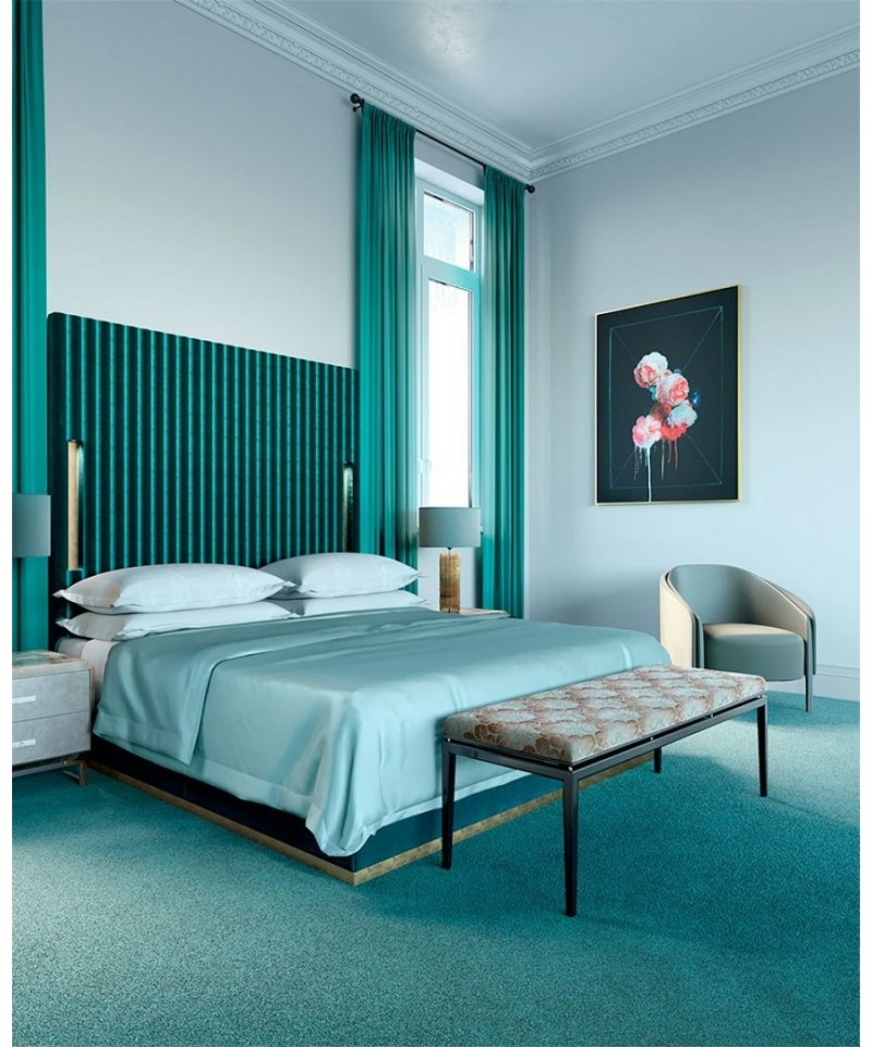 The luxurious bed was created to emphasize the exclusivity of your space. The impeccable combination of materials — gold leaf inserts accentuate the dark cyan hue of the upholstery — gives rise to the bright individuality of the piece of the collection. Relaxing on the Plaza bed is the truly royal pleasure.