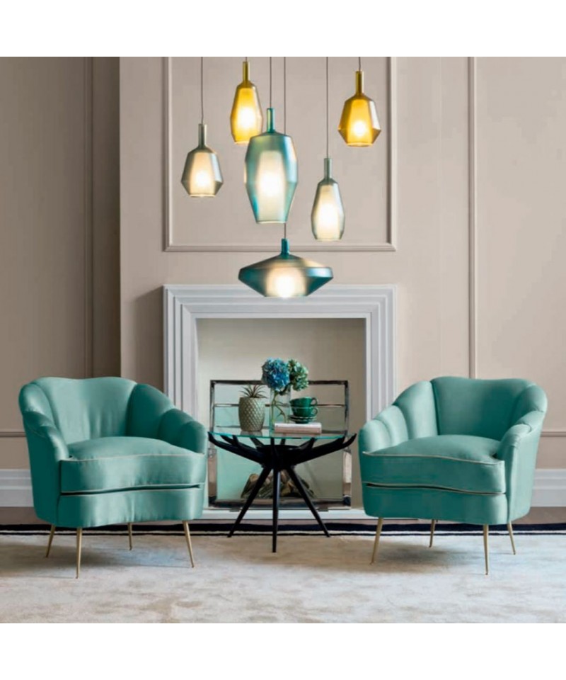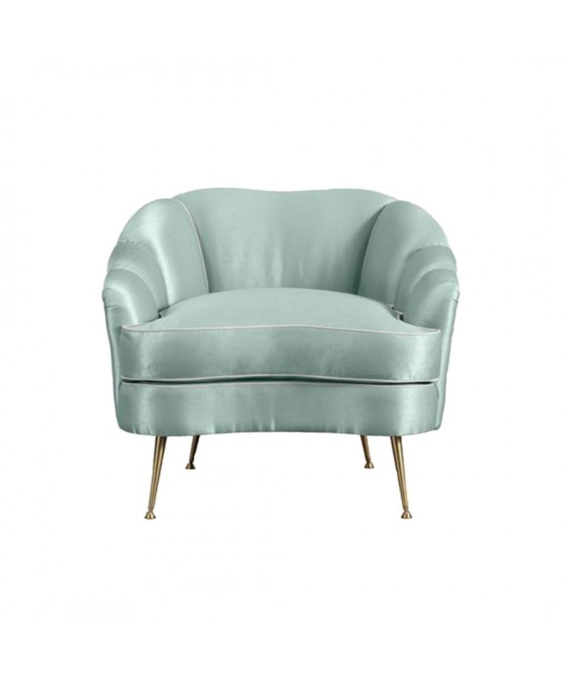 Designers skillfully combined opposites in the Camelia armchair, creating a holistic and harmonious piece of furniture — the combination of massive monochrome sitting and refined legs made from satined brass gives unique vintage aesthetics to the product.