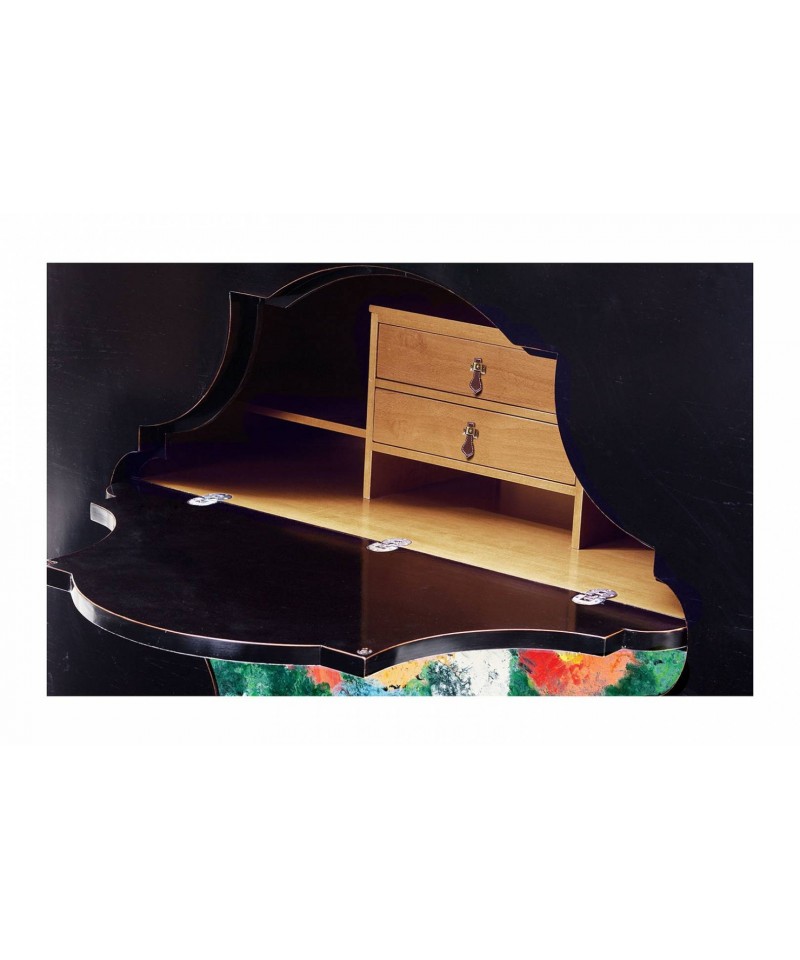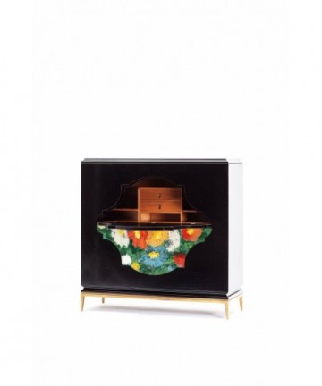 Combination of textures and materials creates special aesthetics of this piece of the collection. Cabinet of two compartments, made of solid maple, designers completed with rectangular handles, and covered the tabletop with silver leaf. Refined legs in anthracite colour emphasize the elegant restraint of the product.