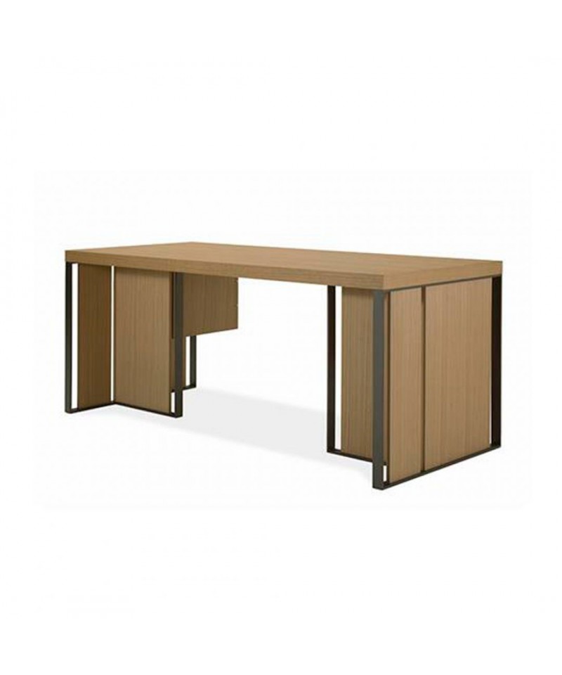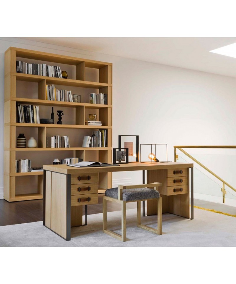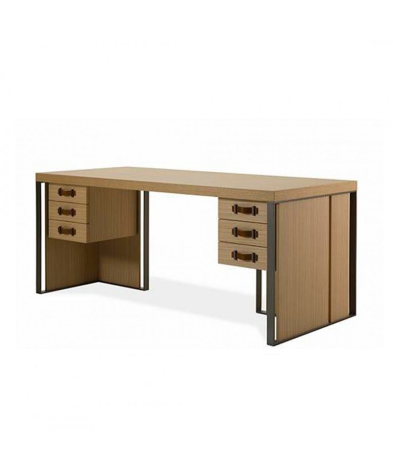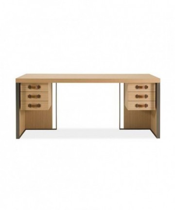 Outstanding in terms of functionality and aesthetics Kobe desk made of oak veneer. Drawer runners are equipped with Blumotion technology. Bronze finish metal structure and handles with hide leather inset reveal the passion for perfection in every detail.