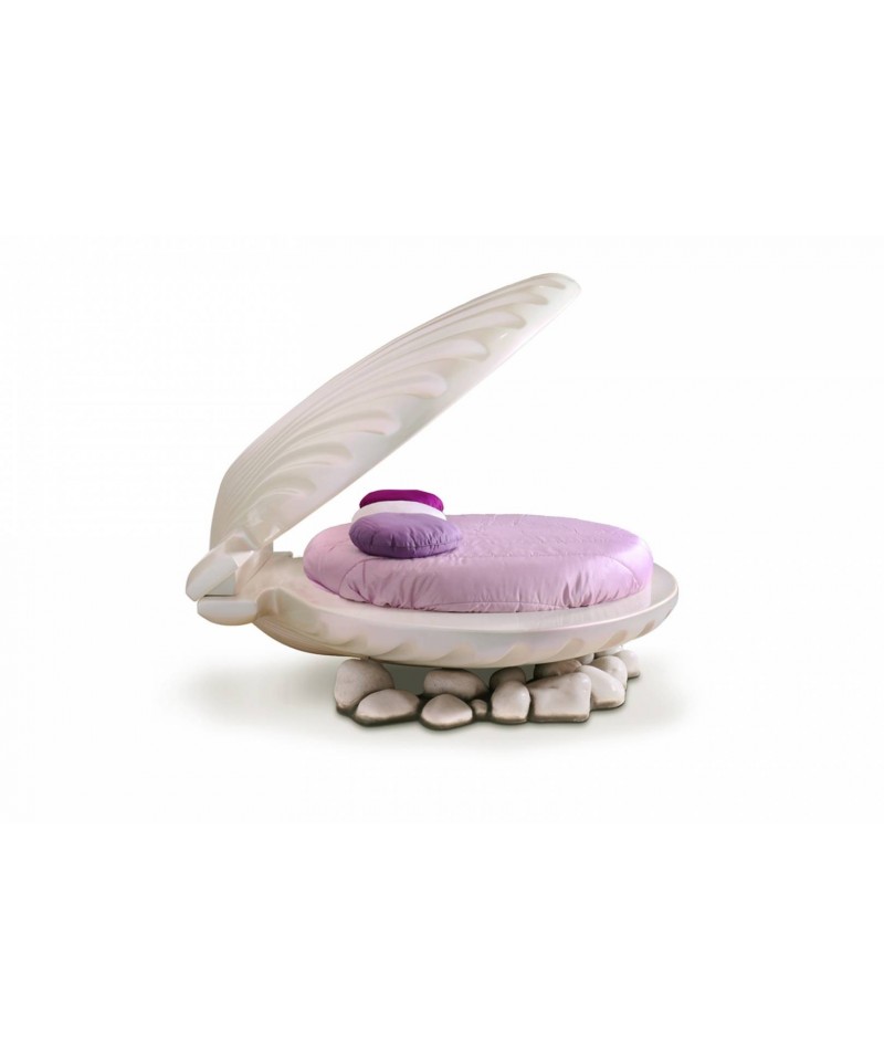 Little mermaid bed was designed by Circu and it's a shell shaped bed. Shells are meant to protect little pearls, to protect them from mother nature. This princess bed will also protect your little girl and help her to dream and become a under sea princess. This piece is made in fiberglass, nacre painted. Inside, it contains lighting.