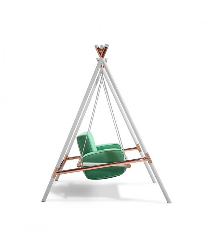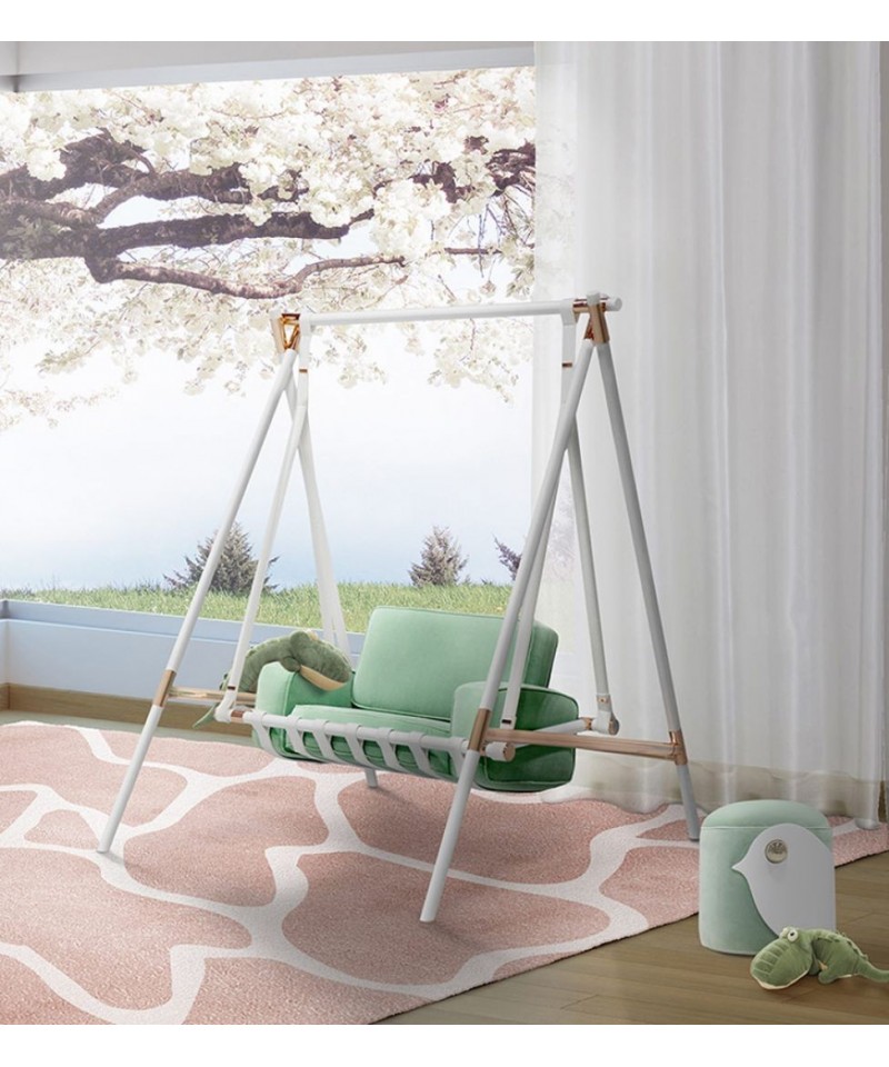 Inspired by the Lewis Carrol’s masterpiece, Alice in Wonderland, the Booboo swing is here to exponentially upgrade your kid’s bedroom design. The sofa’s delicate and luxurious design makes it easy to add to any décor or theme. Its thoroughly thought brass details on the frame add an extra luxury touch to your décor. A perfect merge between comfort and design, the Booboo Swing can easily become your kids’ favourite place to hang out after school. Furthermore, the sofa’s gentle motion will provide you and your children with absolute relaxation, making it the perfect spot for bed-time stories.