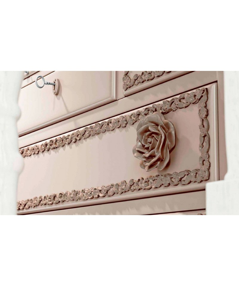 Children's bedroom Love love from the factory Halley - a harmonious union of charming materials and fabrics. Haute couture and craftsmanship raise the quality of furnishing and give life to a space where classic design reinvents itself through new elegance. Pastel colors soothe, and artistic decor and drawings add positive notes to the atmosphere. Price per composition: Bed with a lattice: 120 x 195 cm Dimensions: 131 х 215 х H 122/73 cm Set of bed linen for a mattress: 100 x 195 cm Pillow: 80 x 50 cm Pillow with the inscription Love: 80 x 50 cm Roller: 123 х Ø 28 cm Armchair Dolly Maxi: 129 х 78 х H 80 cm Bedside table with 3 drawers: 56 х 36 х H 59,5 Chest of 6 drawers: 130 х 56 х H 104,5 cm Lamp Cavallo: 40 х 30 х H 57 cm Large round pouf: Ø 86 х H 45 cm Pillow with a buttons: 50 х 30 cm Quilted bedspread with waves: 120 x 195 cm Square canopy: 76 x 76 x H 13 cm Set of curtains with holders Cabinet with a high base: 182 x 65 x H 219 cm