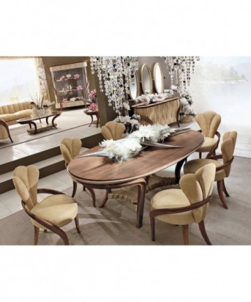 Warm family evenings will be even more pleasant with soft chairs Guglielmo. The soft upholstery made of Guglielmo fabric is perfectly combined with the smooth forms of the base from the walnut and gives a comfortable feeling. They will help you gather all big family at a huge table and make it a center of attraction. Ideal combine with a large oval table.