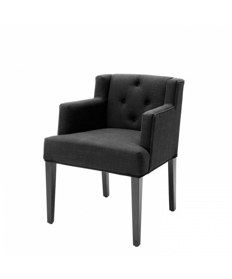 Luxury dining armchair with Panama black fabric. Inspired by the sophisticated Palm Beach interiors of the American coastline, the Eichholtz Boca Raton Dining Armchair is a stunning addition for your style-conscious table setting. Designed to complement the Eichholtz range of discerning designer dining tables, this elegant addition is the epitome of relaxed glamour and timeless style. Stepped back armrests and button back detailing on the back rest achieve a chic aesthetic that is balanced harmoniously with a Panama black fabric finish.