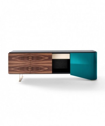 The light, subtle melody of enchanting India with its contrasting authenticity and an inimitable trail of stories with the aroma of the East spices will instantly appear in your living room thanks to this extraordinary sideboard made of ash moka veneer and Canaletto walnut. The design of the product, thought out to the smallest detail, hints at the layering and the polarity of the Indian culture, which is so generous with diverse semantic impressions. The product will brighten up your living room and give you a unique aesthetic ambience.