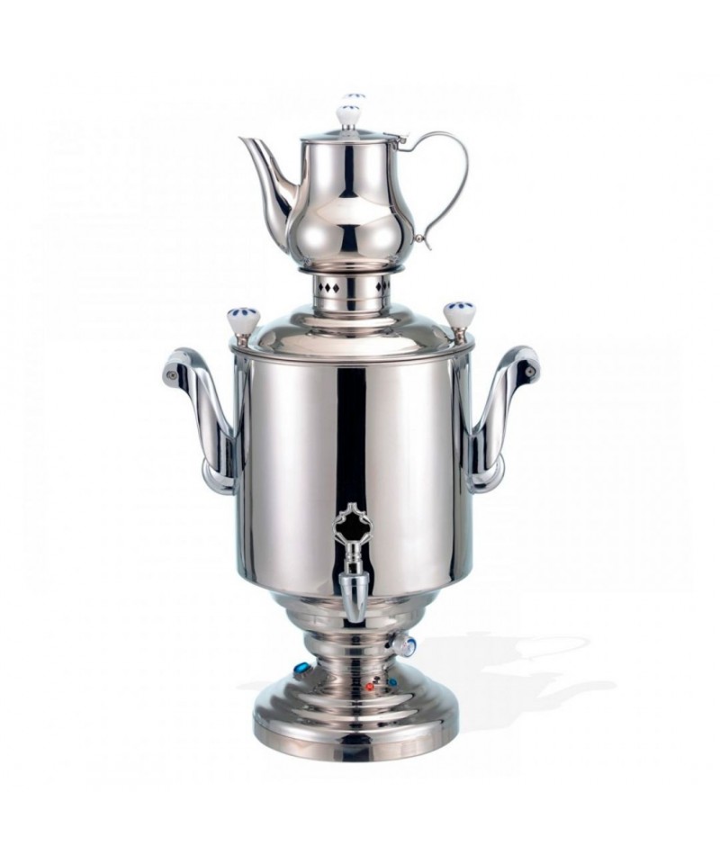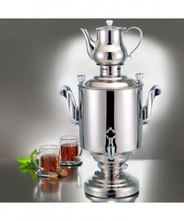 Samovar Katharina III is the tribute to the centuries-old culture of tea ceremony. The 15-litres hot water tank allows you to gather at your table a large group of admirers of the fragrant drink. The traditional design of the product fits particularly well into the stylized classic interiors.