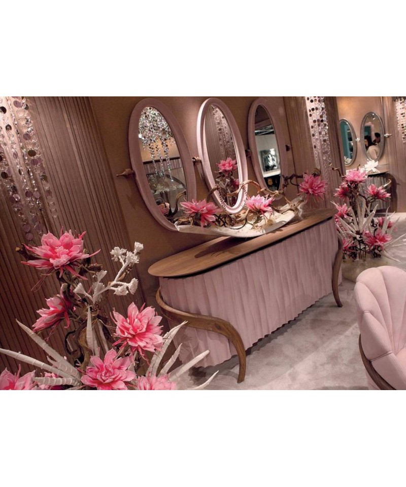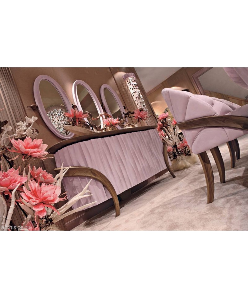 Compact Bellis buffet will complement the hospitable look of your living room. Lines from the nature was an inspiration for curved and smooth lines of a buffet. It helps to create a comfortable atmosphere. A solid base of walnut is upholstered by nubuck in a fashionable shade of Bellis.