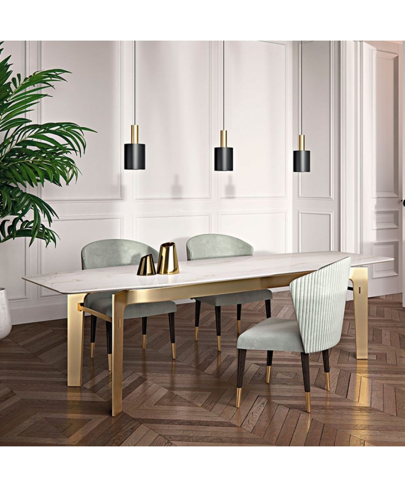 Inspired by restrained beauty of the snow-white water lily, designers of the Capital Collection have created this unique piece that will perfectly fit into any space — into an elegant dining room, a cozy bedroom and a luxurious living room. Tender tone of the upholstery together with golden glossy metal and deep black color of the legs creates an effect of modern luxury with a slight retro touch.