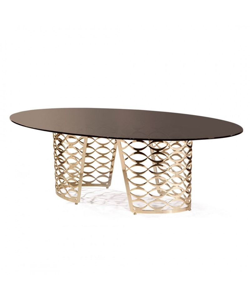 Luxurious dining table — the embodiment of true Italian style and gloss. The laconic oval tabletop complements the weightless architectural base from bronze, creating the effect of floating above the plane. Perfectly combining progressiveness and classics in design, the elegant Isidoro will complete the interior of modern dining room.
