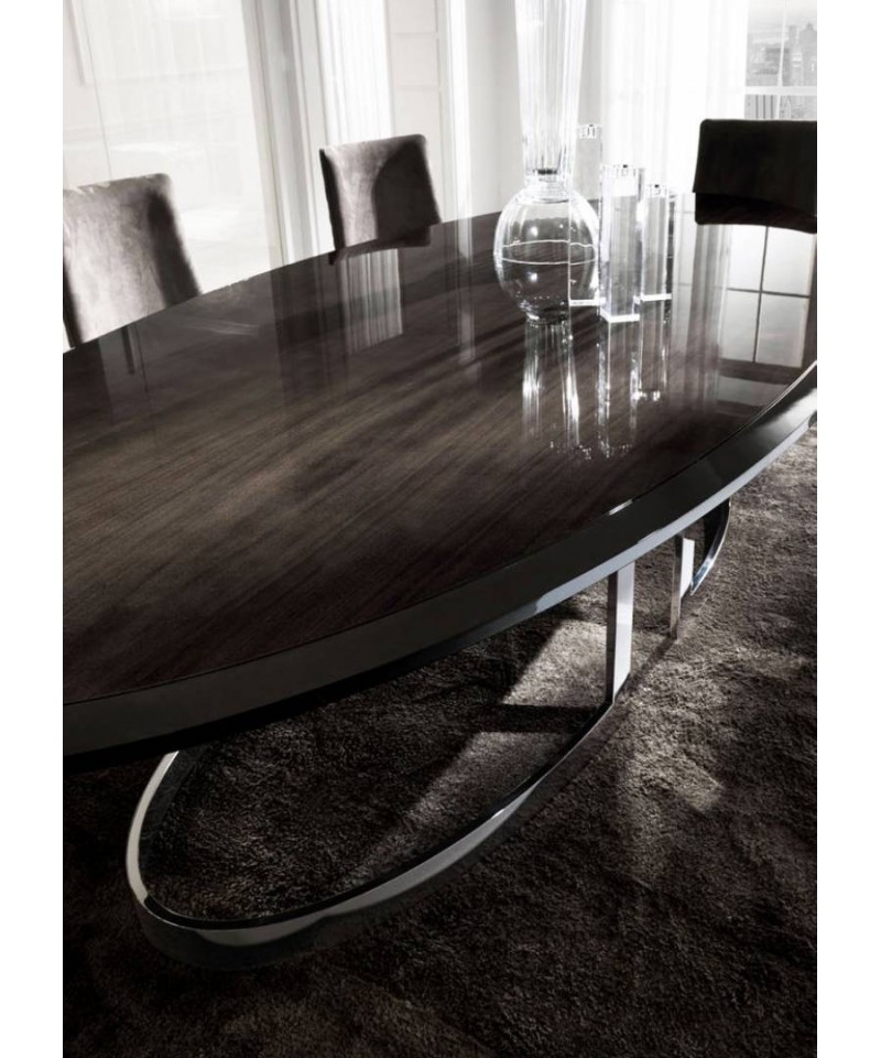 Specifications: Dimensions Diameter: 300 cm Depth: 130 cm Height: 82 cm Material Stainless steel MDF Ebano macassar veneer
