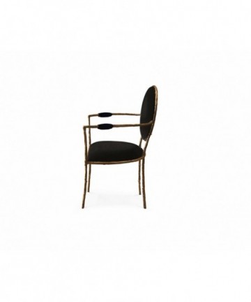 Our artisans have masterfully captured the alluring essence of an enchanted forest with this dining chair. Its antique gilded branch like structure can't help but mesmerize the beholder. Her fully uphosltered body pops as the backdrop to the glinting, whimsical branch frame.