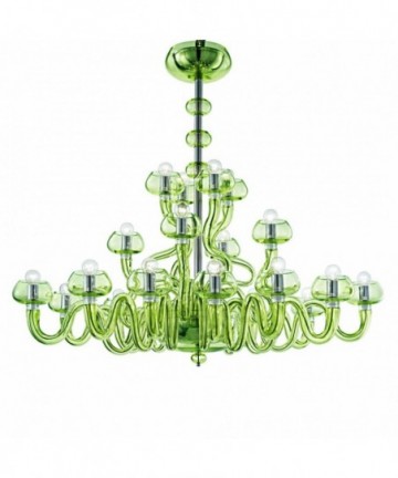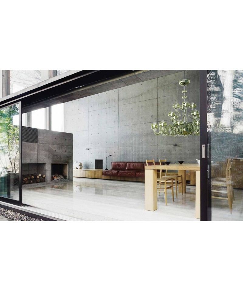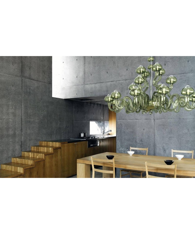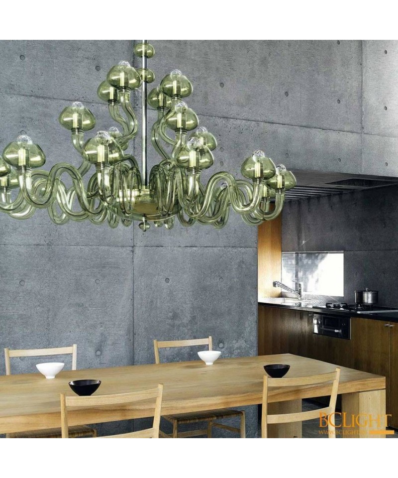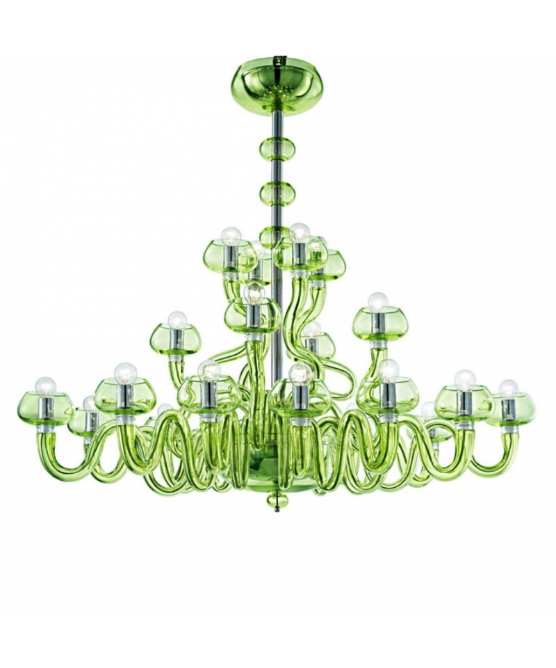 Venetian chandelier, revisited in 1992 by Angelo Barovier. Polished chrome fittings.