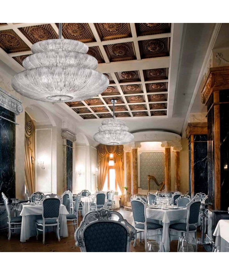 Restrained and laconic construction of the product focuses all attention on its exquisite design with premium materials processed by hand of exellent craftsmen. Spheres soaring in three planes give additional volume to the room due to the play of light rays and glare, reflected from thousands facets made of chromed metal. This luxurious chandelier will become the unique decoration of both private apartments and public spaces.