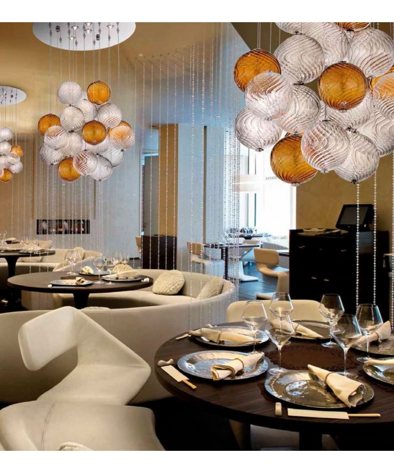 This dynamic and movable chandelier will become the ideal source of scattered pinpoint light, and crooked lines carved on round plafonds in silvery and bronze shades, that fixed at different heights, will create incredible visual effects that fascinate by their versatility. Stylish and original accessory will fill the space with the atmosphere of endless holiday.