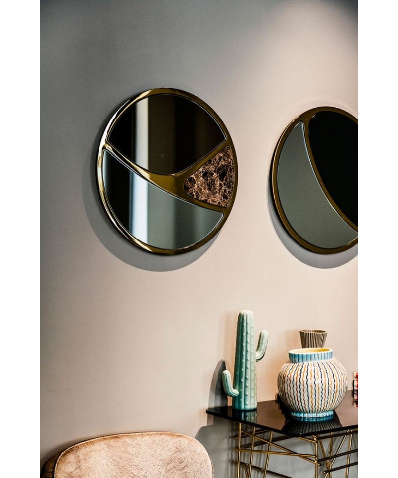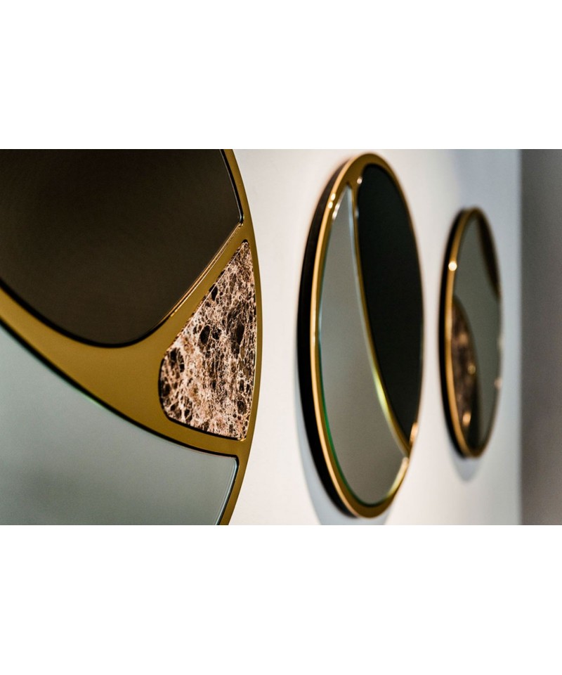 Specifications: Dimensions Diameter: 50 cm Material Black MDF Gold finishing Extraclear Bronze and fumè Mirrored glass Emperador marble