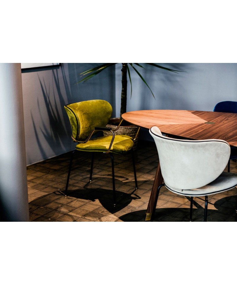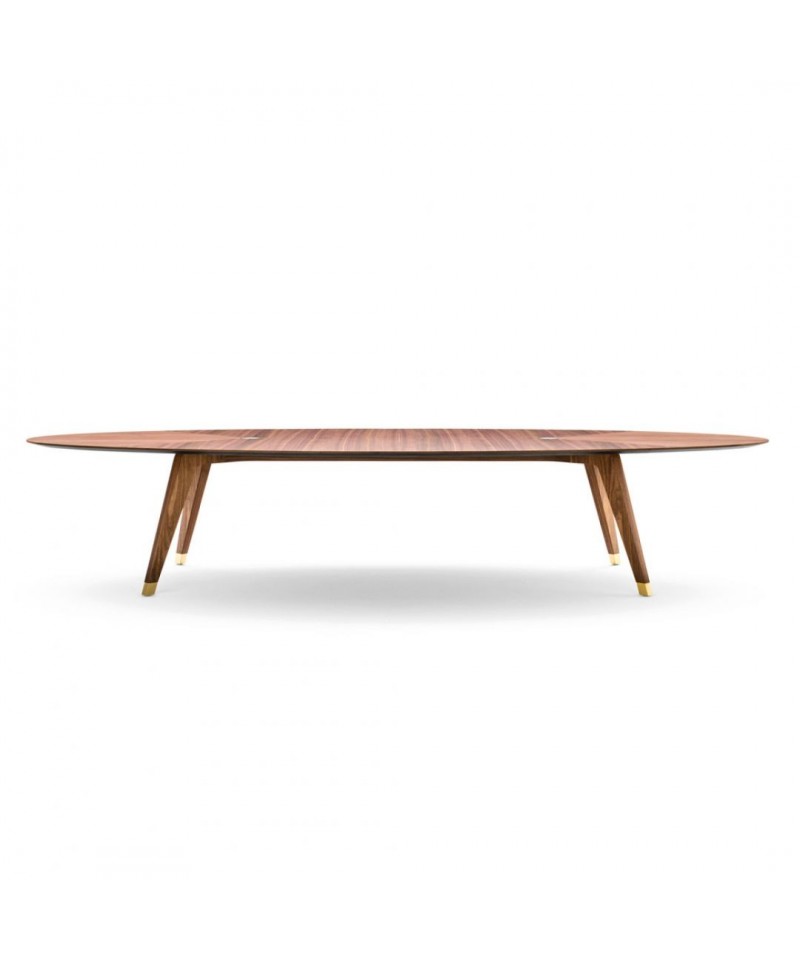 Simple and laconic design Santiago dining table will perfectly fit into any stylistic solution of the dining room interior. Unique texture of the noble Canaletti walnut turns the product into a standard of restrained luxury. You can easily settle with big fun company, and also enjoy with breakfast alone behind a wide oval table top.