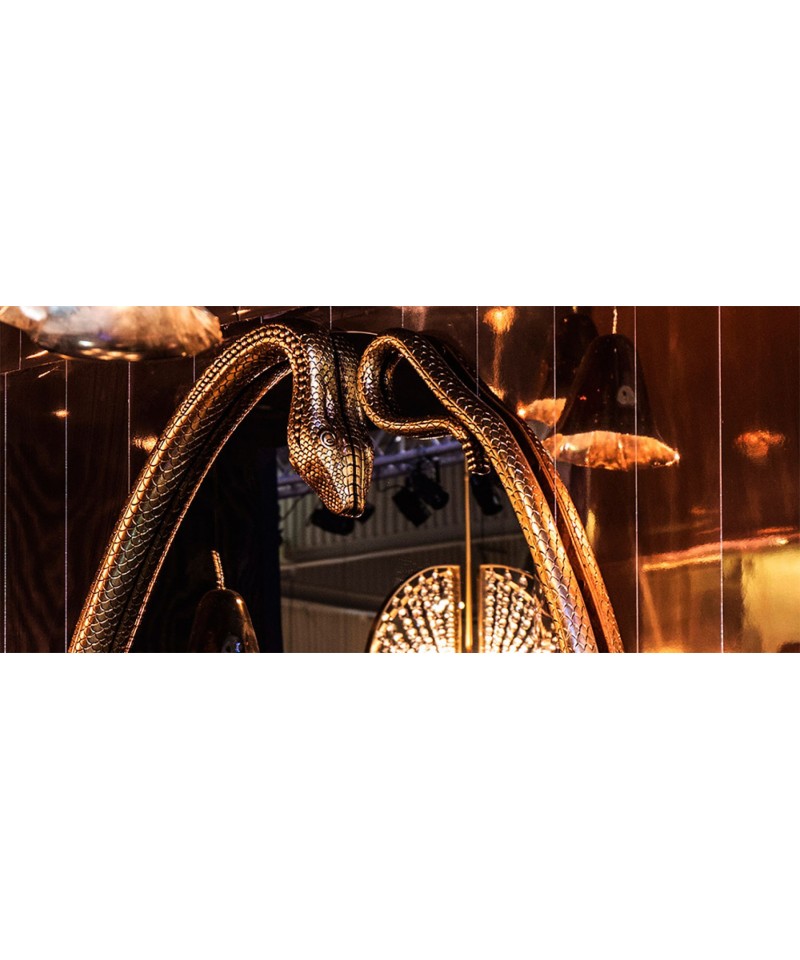 Fascinating flexibility and grace of amphibians inspired designers of KOKET to create this unique accessory. Masters filigreedly recreated the noble color of the snake around the mirror, covered with gold leaf. Serpentine's mirror will become an expressive exotic accent in your interior.