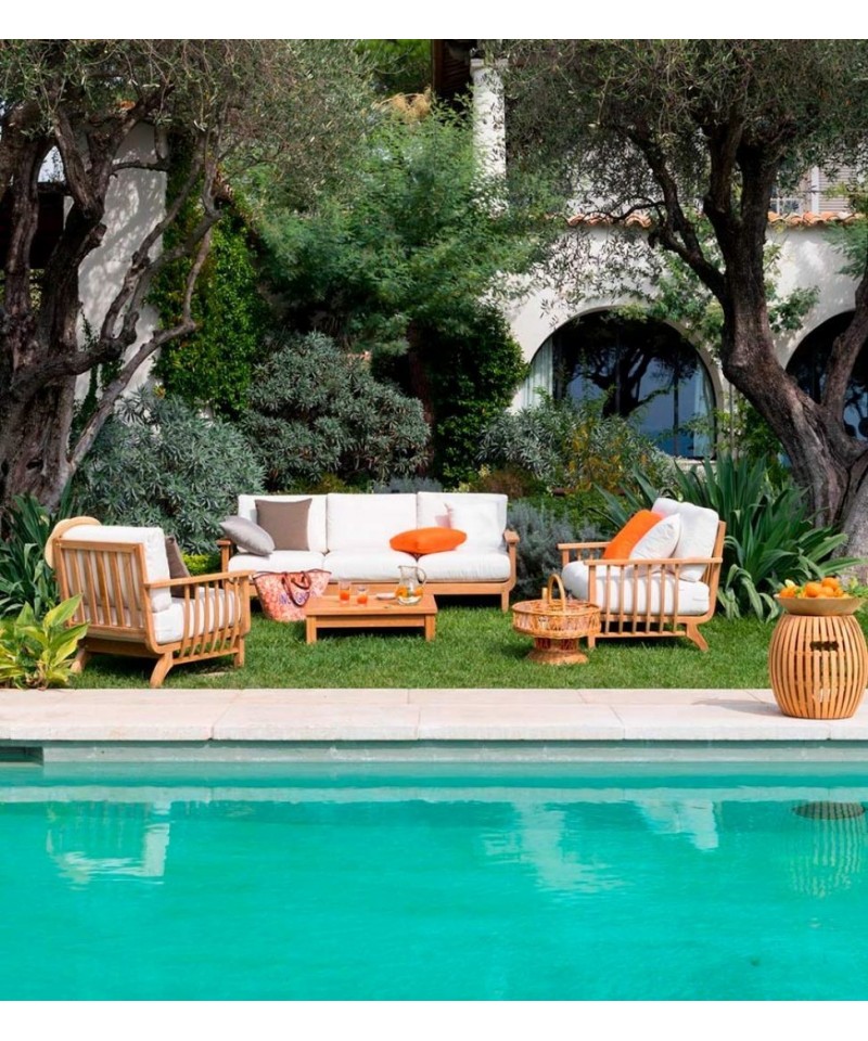 Specifications: Dimensions Width: 209 cm Depth: 85 cm Height: 82 cm Seat height 42 cm Material Fabric Teak