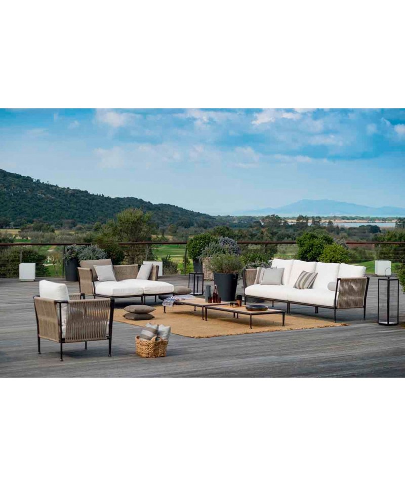 Specifications: Dimensions Width: 86 cm Depth: 81 cm Height: 77 cm Seat height 40 cm Material Bronze Cast aluminum Hand woven polyolefin cord