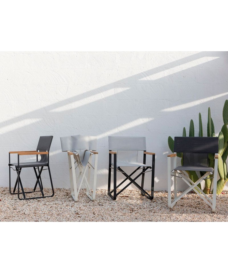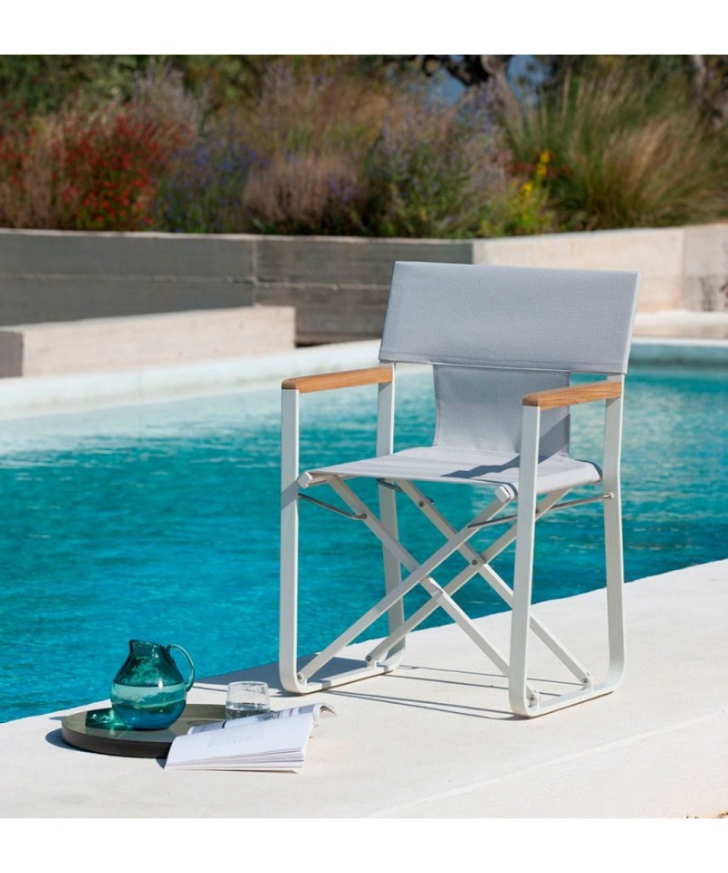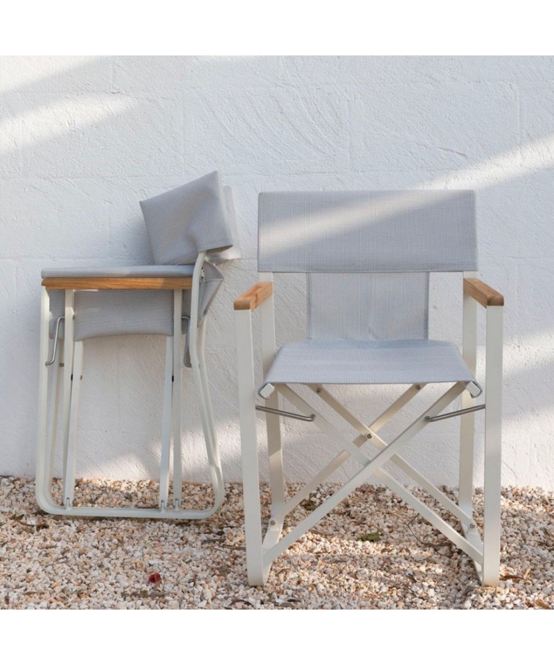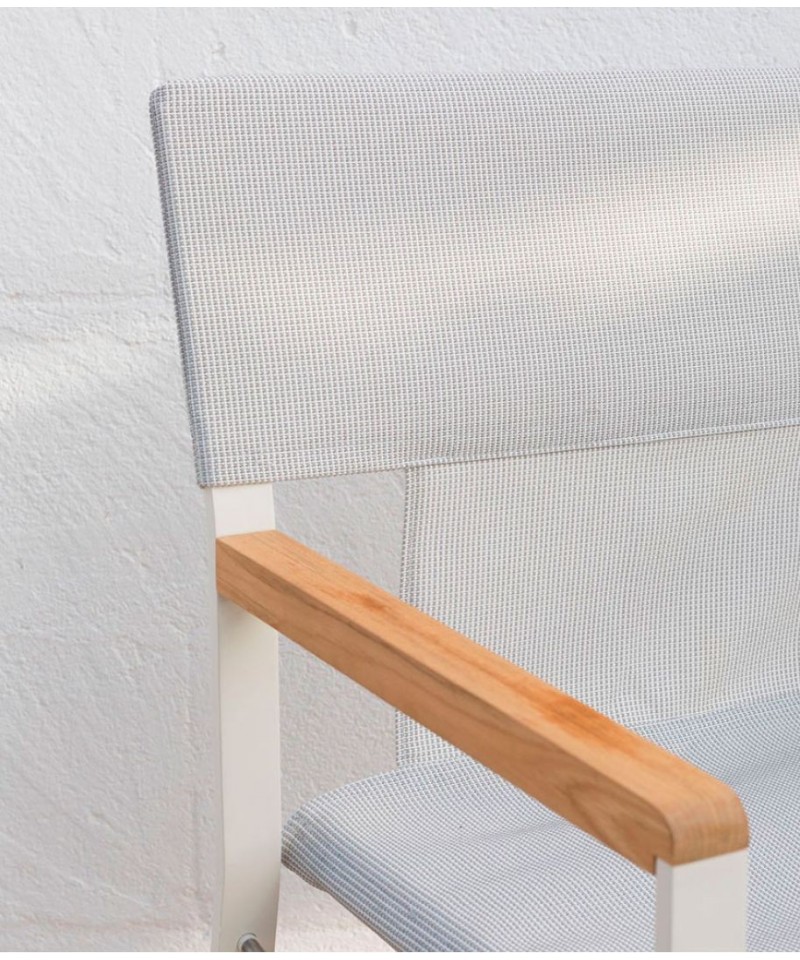 Specifications: Dimensions Width: 59 cm Depth: 54 cm Height: 86 cm Seat height 45 cm Material Aluminium Fabric Teak