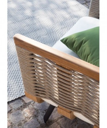 Specifications: Dimensions Width: 92 cm Depth: 92 cm Height: 68 cm Seat height 42 cm Material Cord Fabric Teak
