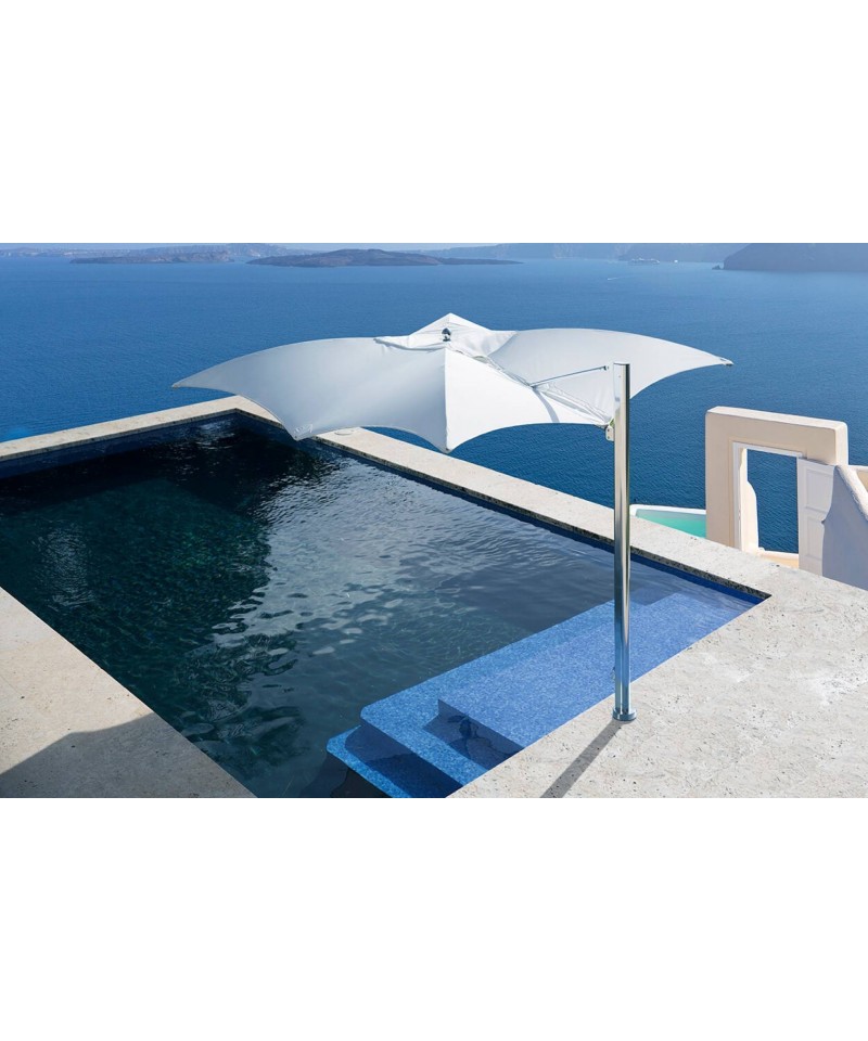 The Ocean Master MAX Manta Cantilever redefines the boundaries of shade architecture. Inspired by the depths of the sea, this parasol creates open air living spaces that are tranquil and pleasing to the eye. This cantilever features a polished titanium frame where beauty and brawn harmonize for an imaginative shade platform that delights the eye and shields the body with unparalleled durability.