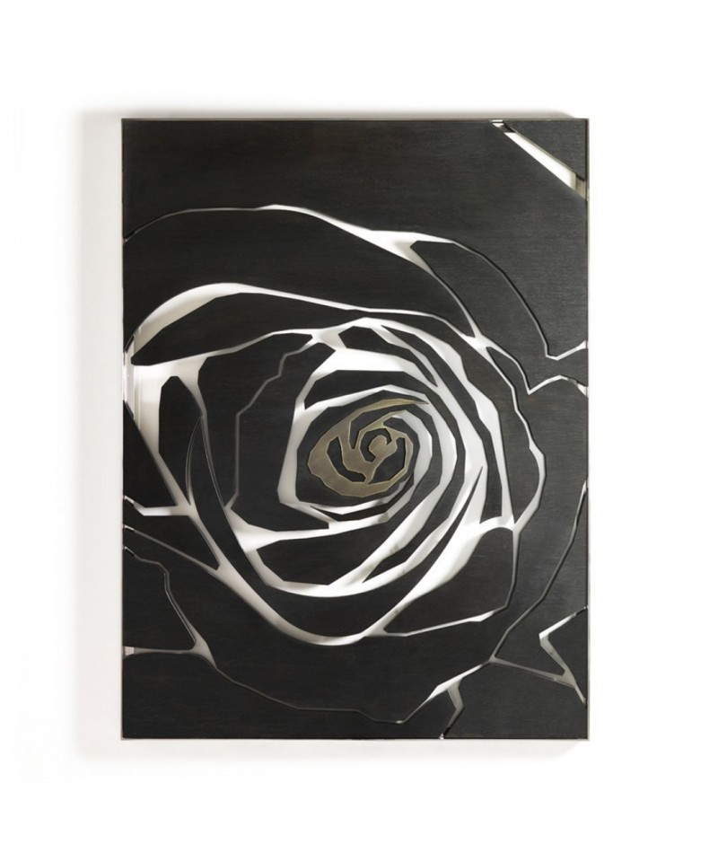 Designers recreated the delight of the fleeting beauty of the blooming tea-rose bud on the decorative canvas of the same name. Opened petals from the walnut solid seems to show us the heart of a bronze bud. ROSE will add a floral accent to your space.
