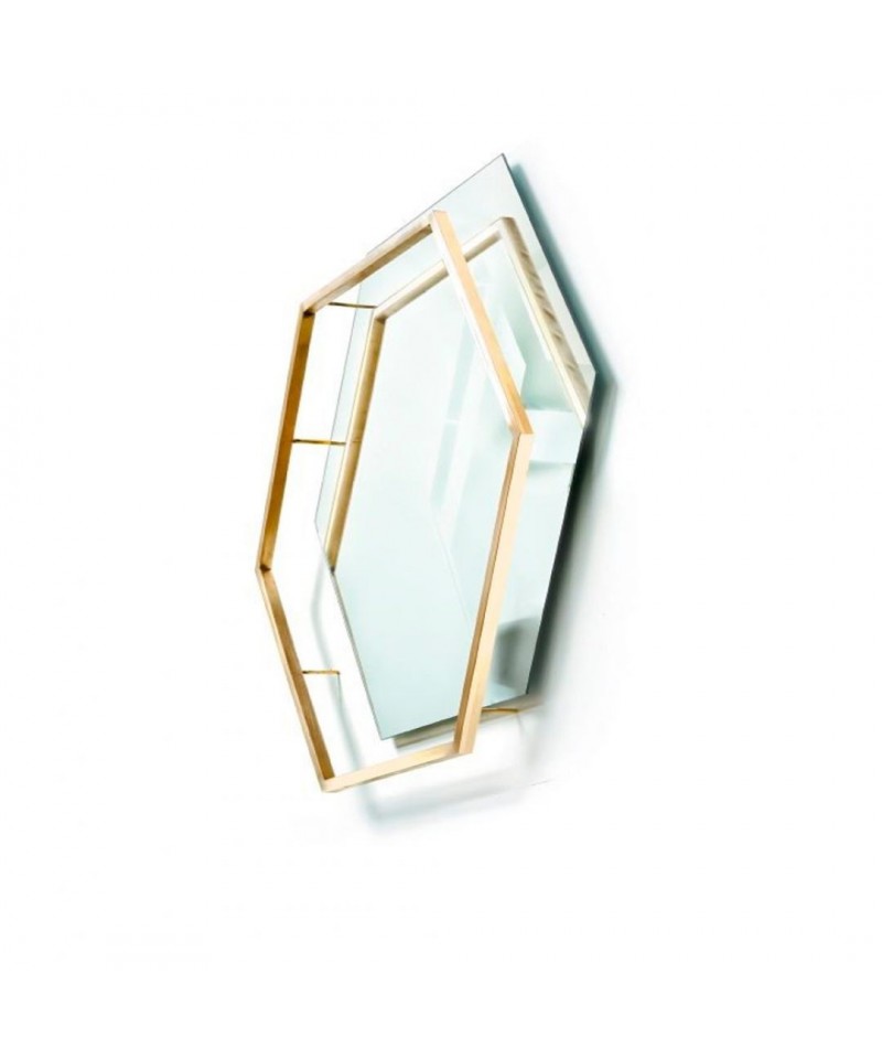 This original mirror will emphasize the perfection of your bathroom. Combination of cold sparkling canvas of the mirror and warm flickering brass border, surrounded by LED, will create unique game of colours, light and shadow. Endless reflections of the geometric shapes of the product seems to create a mysterious and enticing corridor of images.