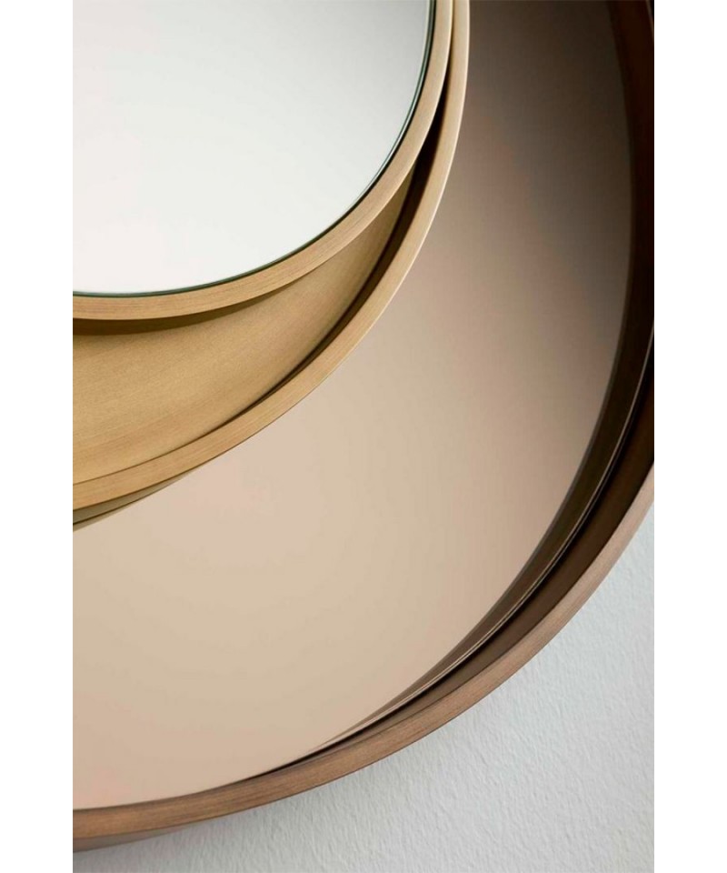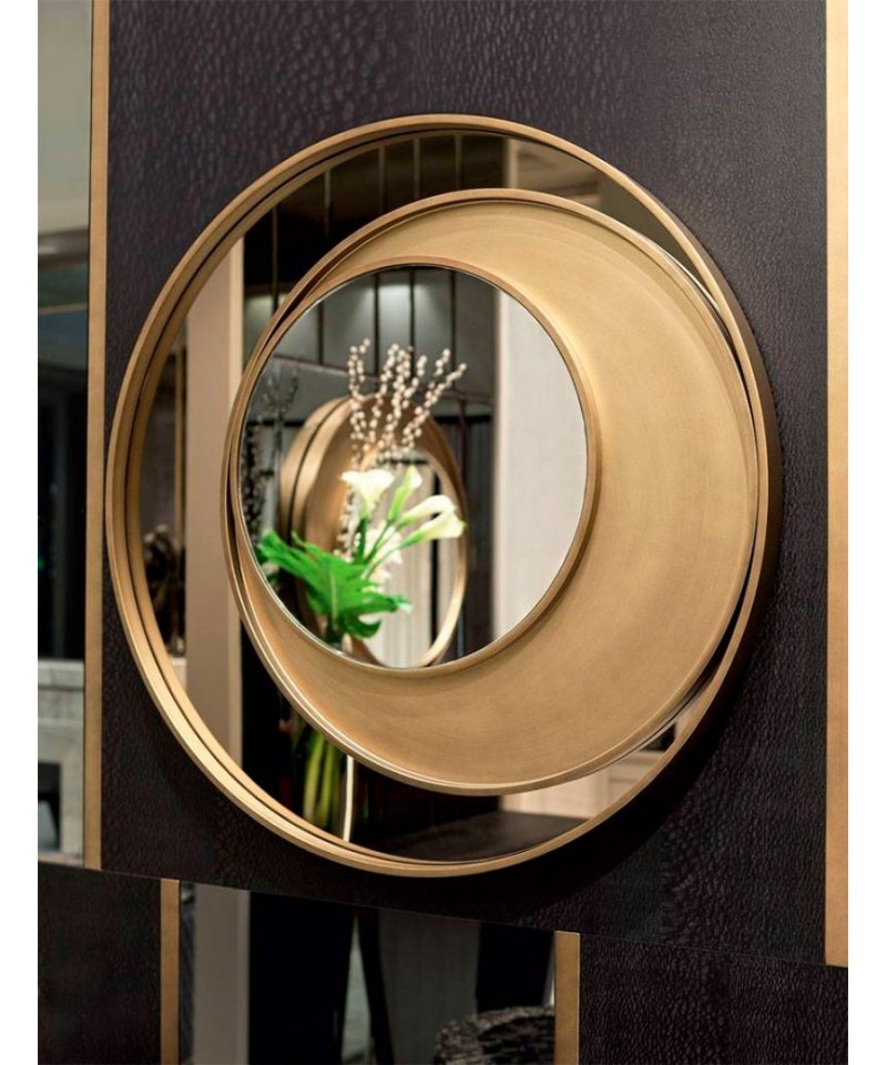 Eclisse, not simply a mirror but a decorative work of art. Thanks to their eye-catching frames made up of concentric and misaligned circles, Eclisse mirrors allow for material interplay that provides depth and volume as well as a visual expansion of the space. Fashioned from wood of gold finish, thereby coordinating seamlessly with all products from the Home Collection.